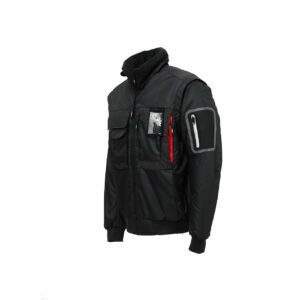 Bomber da lavoro robusto con maniche staccabili, idrorepellente e con interno in micropile. Ampie multitasche frontali con pattina e chiusura di sicurezza in velcro e zip, tasca termonastrata supplementare su manica, ampia tasca interna, tasca multimediale con uscita per auricolare tecnologia Free Sound e tecnologia Besafe, flap posteriore a scomparsa personalizzabile; polsini e fondo vita in resistente costina; colletto interno in morbido microfleece. Cappuccio a scomparsa regolabile in nylon. Inserti antiusura sulle spalle; dettagli reflex posteriori. Bomber per Agricoltori, Autotrasportatori, Carpentieri, Elettricisti, Idraulici, Imbianchini, Installatori, Magazzinieri, Meccanici, Muratori