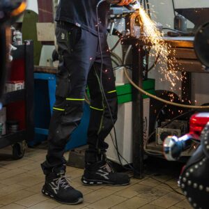 Pantalone in tessuto U-4 (U-Power 4 way stretch) molto comodo, resistente, morbido sulla pelle, idrorepellente, traspirante e asciuga rapidamente. Dotato di due ampie tasche anteriori, elastico in vita con un sistema innovativo di regolazione a scomparsa. Chiusura centrale con zip YKK e bottone gommato antigraffio. Carrè posteriore accentuato per una maggior protezione della parte lombare e nastro reflex su passante tubolare posteriore. Tasca laterale porta utensili, multifunzionale con porta badge a scomparsa, due tasche posteriori di cui una con pattina e una con chiusura di sicurezza a velcro, battitacco in resistente polyoxford 600D. Due tasche, chiuse con zip in corrispondenza del tascone laterale e della tasca frontale destra. Triple cuciture, Slim Fit.