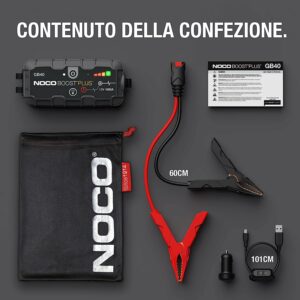 Contenuto della confezione: avviatore di emergenza portatile e ultra-sicuro per auto GB40 con batteria al litio, morsetti ad alta resistenza, caricabatterie per auto da 12 V, cavo di ricarica micro USB, custodia in microfibra e manuale di istruzioni
