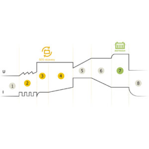• Curva di carica interamente automatica e intelligente in 8 tappe (50% più rapido di un caricabatterie tradizionale)
