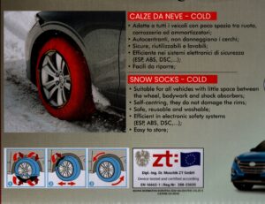 Le calze sono un perfetto kit di sicurezza per la guida su strade innevate e ghiacciate, sviluppate per la guida a breve e lunga distanza su strade asfaltate innevate e ghiacciate.