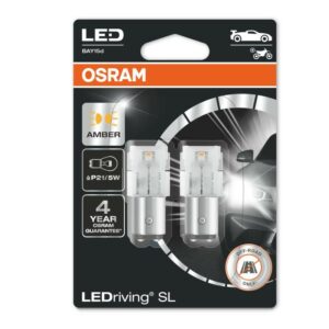 Le lampade di segnalazione LEDriving SL P21/5W offrono una luce moderna e intensa. Queste lampade sostitutive sono adatte a tutti gli attacchi per lampade P21/5W convenzionali. Rispetto alle lampade standard, queste lampade LED retrofit consumano fino all’80% in meno di energia. OSRAM offre una garanzia di 4 anni per queste lampade LEDriving SL. Questi prodotti non sono omologati ECE, dunque non possono circolare sulle strade pubbliche. L’uso non consentito dalla legge comporta il ritiro della carta di circolazione e la perdita della copertura assicurativa. La vendita e l’uso di questi prodotti non sono consentiti in alcuni paesi. Contatta il distributore di zona per verificarne la disponibilità nel tuo paese.