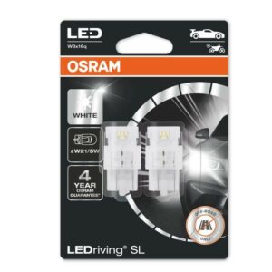 Le lampade di segnalazione LEDriving SL W21W/5W offrono una luce moderna e intensa con una temperatura di colore fino a 6.000 Kelvin. Queste lampade sostitutive sono adatte a tutti gli attacchi per lampade W21W/5W convenzionali. Rispetto alle lampade standard, queste lampade LED retrofit consumano fino all’80% in meno di energia. OSRAM offre una garanzia di 4 anni per queste lampade LEDriving SL. Questi prodotti non sono omologati ECE, dunque non possono circolare sulle strade pubbliche. L’uso non consentito dalla legge comporta il ritiro della carta di circolazione e la perdita della copertura assicurativa. La vendita e l’uso di questi prodotti non sono consentiti in alcuni paesi. Contatta il distributore di zona per verificarne la disponibilità nel tuo paese.
