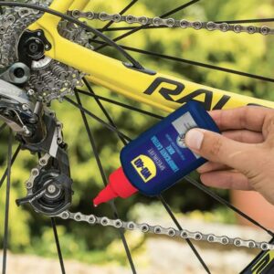 Per ottenere un buon risultato, consigliamo prima di pulire la catena con WD-40 SPECIALIST® BIKE Sgrassante per rimuovere sporco, olio e morchia. Successivamente prendete il lubrificante catena per condizione umide, agitate bene il contenitore ed iniziate ad versare il prodotto. Per fare uscire il prodotto dovete utilizzare la rotellina alla base del beccuccio. Applicate il prodotto con precisione su tutta la lunghezza all’interno della catena e lasciate agire.