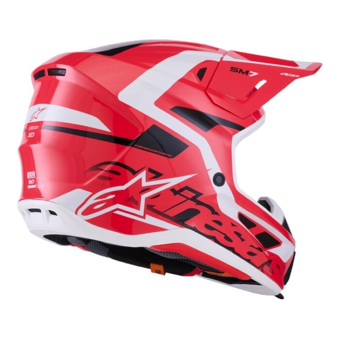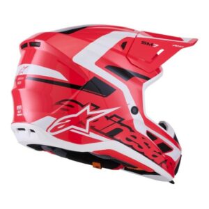 Il casco S-M7 è progettato per le gare off-road ed è ottimizzato per offrire la perfetta combinazione di ventilazione superiore e comfort in un casco leggero, mentre la sua calotta composita estremamente aerodinamica offre una protezione eccezionale dagli impatti. Oltre ai sistemi brevettati Alpinestars A-Head Fitment e Visor Detaching, l’S-M7 è dotato di tecnologia innovativa PLASMA sul bordo inferiore della calotta per una dissipazione ottimale dell’energia in caso di contatto con l’area della clavicola.