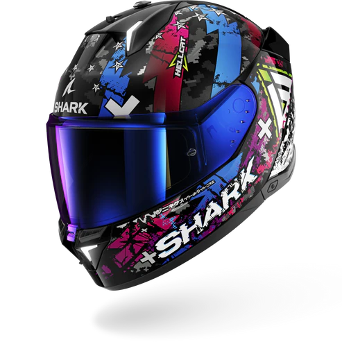 CASCO SHARK SKWAL I3 HELLCAT BLACK CHROME BLUE